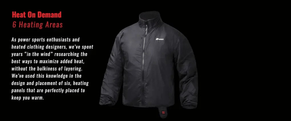 Its form-fitting design allows riders to replace their existing jacket liner while still maintaining high comfort and mobility levels. This lightweight mid-layer power sports heated jacket liner is weather resistant so it’s safe to use in both snow and rain.