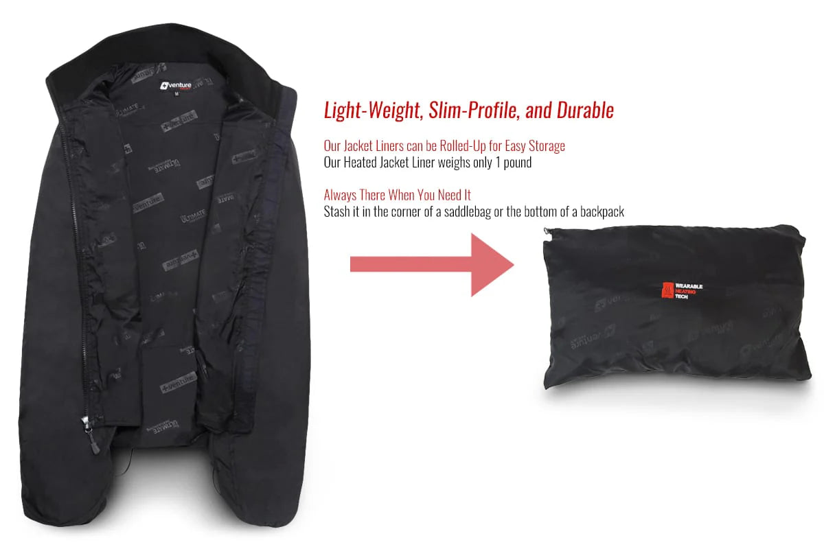 The Venture Heat Touring Bluetooth Motorcycle Heated Jacket Liner is your ultimate companion for winter riding. Customers rarely go above the low- medium setting due to the amount of heat the electric jacket can produce. Your existing jacket helps trap the heat in and keep the wind out. With Bluetooth connectivity, choose up to 10 different settings directly from your phone